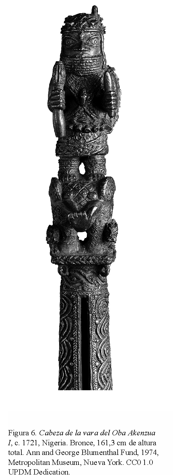[21] Susan Vogel, “Art and Politics: A staff from the Court of Benin, West Africa”, Metropolitan Museum of Art Journal, vol. 13, 1979, p. 95.